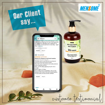MENSOME Antifungal Body Wash Contains 100% Natural Ingredients Which Are Completely Safe And Free From Harmful Chemicals. MENSOME Antifungal Body Wash is Well Suited For Almost All Skin Types. This Antibacterial And Antifungal Body Wash, Washes Away Germs Contracted After A Sweaty Gym Workout, Cycling, Running Or Any Other Physical Activity. MENSOME Antifungal Body Wash Comes In A 300ml Sized Bottle. Our All Natural Antifungal Body Wash Helps In Naturally Moisturising Your Skin And In Preventing Body Odour And Skin Acne.