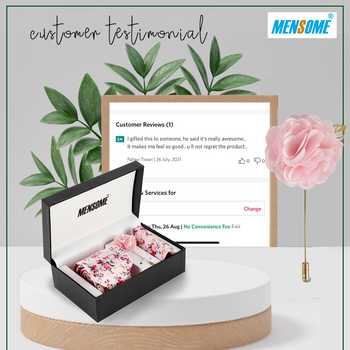 All the items in the mensome tie set are kept together in a wonderful wooden box. The box safeguards the items from external damage and also adds aesthetic appeal to the set. This tie cufflinks gift set makes for a perfect surprise for corporate employees or even your loved ones. You can gift these as a combo gift for him on occasions like Diwali, Christmas, New Years, Valentine's day and Anniversary!