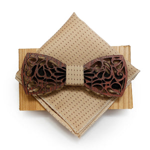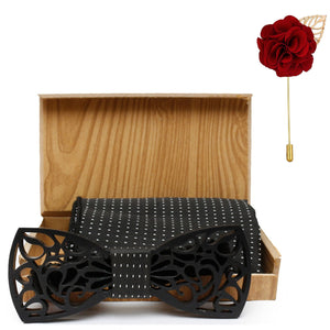 Floral Wooden Bow Tie With Pocket square and Lapel Pin