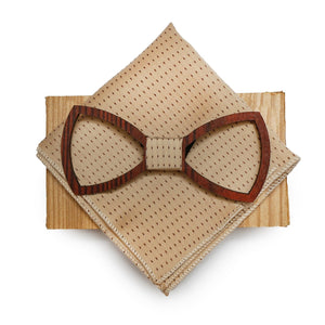 • Leaf Wooden Bow Tie With Pocket square and Lapel Pin