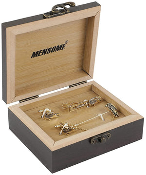 Cufflinks , Tie Pin and Lapel Pin set by Mensome. The package includes a lapel pin , a Cufflinks and a Tie Pin.It is a complete set for men accessories and be it any wedding, party or any function you don’t need to look anywhere else. It comes in Wooden box packing and in number of designs.Choose the design which suits you best and style yourself with Mensome. Neck tie set with Lapel Pin and pocket square in men's ties is anothe best gifting option also.