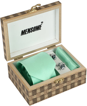 • Aqua Green Neck Tie, Pocket Square And Cufflinks Combo Gift Set
