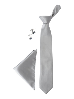 Grey Neck Tie, Pocket Square And Cufflinks Combo Gift Set