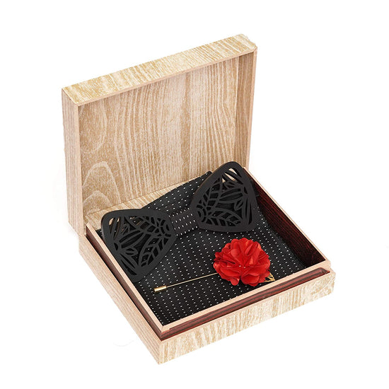 Self designed wooden bow with combo of pocket square and flower lapel is an essential accessory in your wardrobe. Whether you want to wear entire combo set in any wedding function or party or you just want to wear pocket square on your blazer for office function, this entire combo is must need for you. Mensome wide range of designs to chose upon. Select design which suits your style and set you apart from crowd.