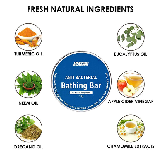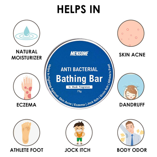 MENSOME Bathing Bar is Formulated with specially chosen ingredients for your skin to clean & get rid of fungal & bacterial infections in a mild & gentle way & leaves your skin refreshed, revitalized, conditioned & healed.