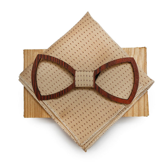 Conical Wooden Bow Tie With Pocket square and Lapel Pin