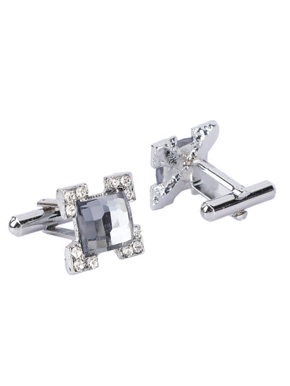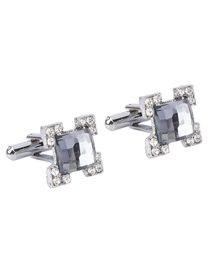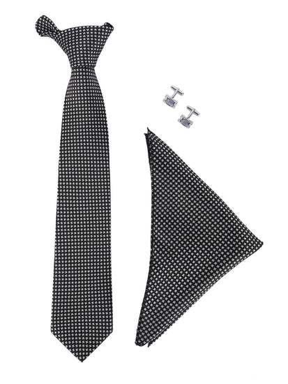 MENSOME Black And Grey Dot Neck Tie Combo Set With Pocket Square And Cufflinks In Wooden Gift Box