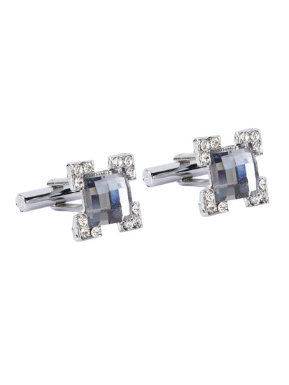 MENSOME Black Geometric Neck Tie Combo Set With Pocket Square And Cufflinks In Wooden Gift Box