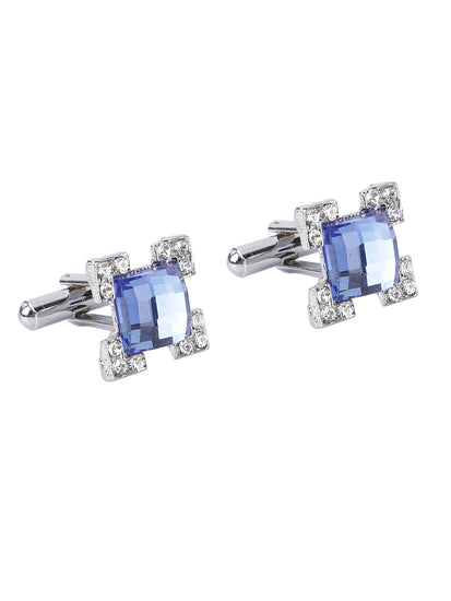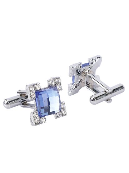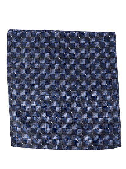 MENSOME Blue Check Neck Tie Combo Set With Pocket Square And Cufflinks In Wooden Gift Box