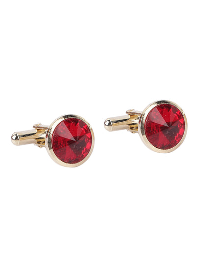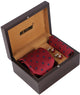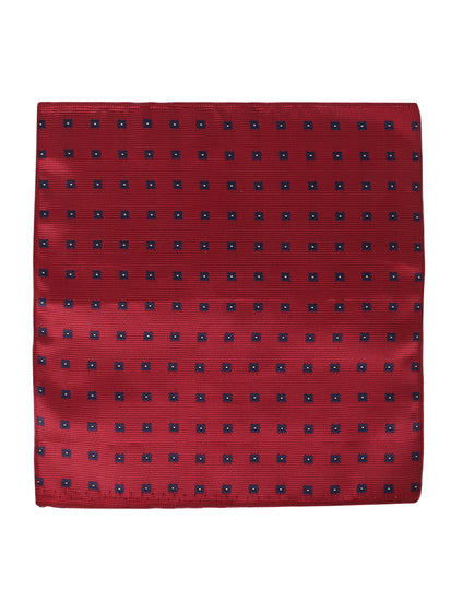 MENSOME Maroon Geometric Neck Tie Combo Set With Pocket Square And Cufflinks In Wooden Gift Box