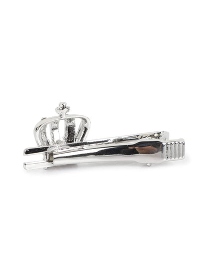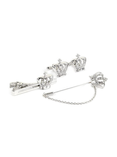 MENSOME Silver Crown Cufflinks , Tie Pin and Lapel Pin Gift Set