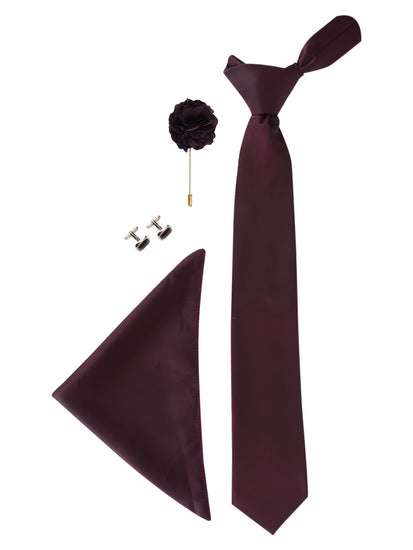 Wine Neck Tie, Cufflinks, Pocket Square And Lapel Pin Combo Gift Set